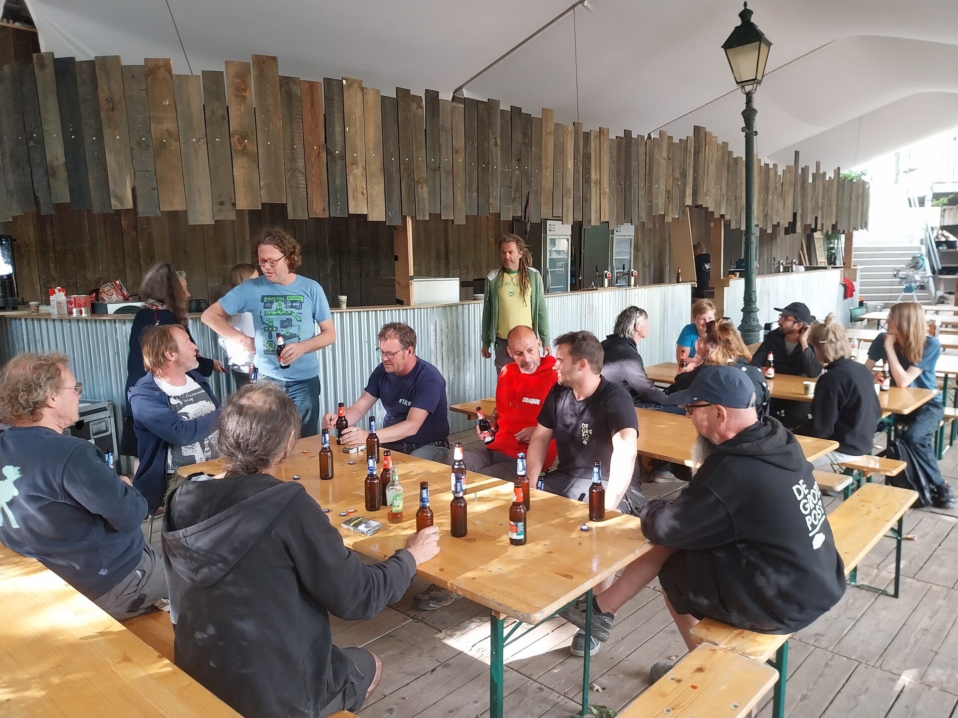 Bij de Vlasmarkt ; de Henken een stevige hand helpen voor de Gentse Feesten. Beter wordt het leven niet.