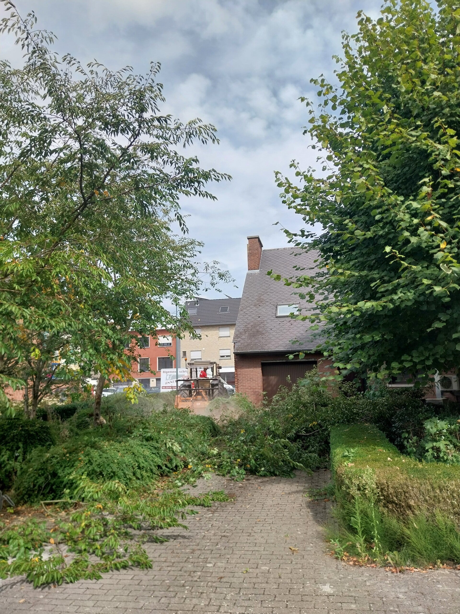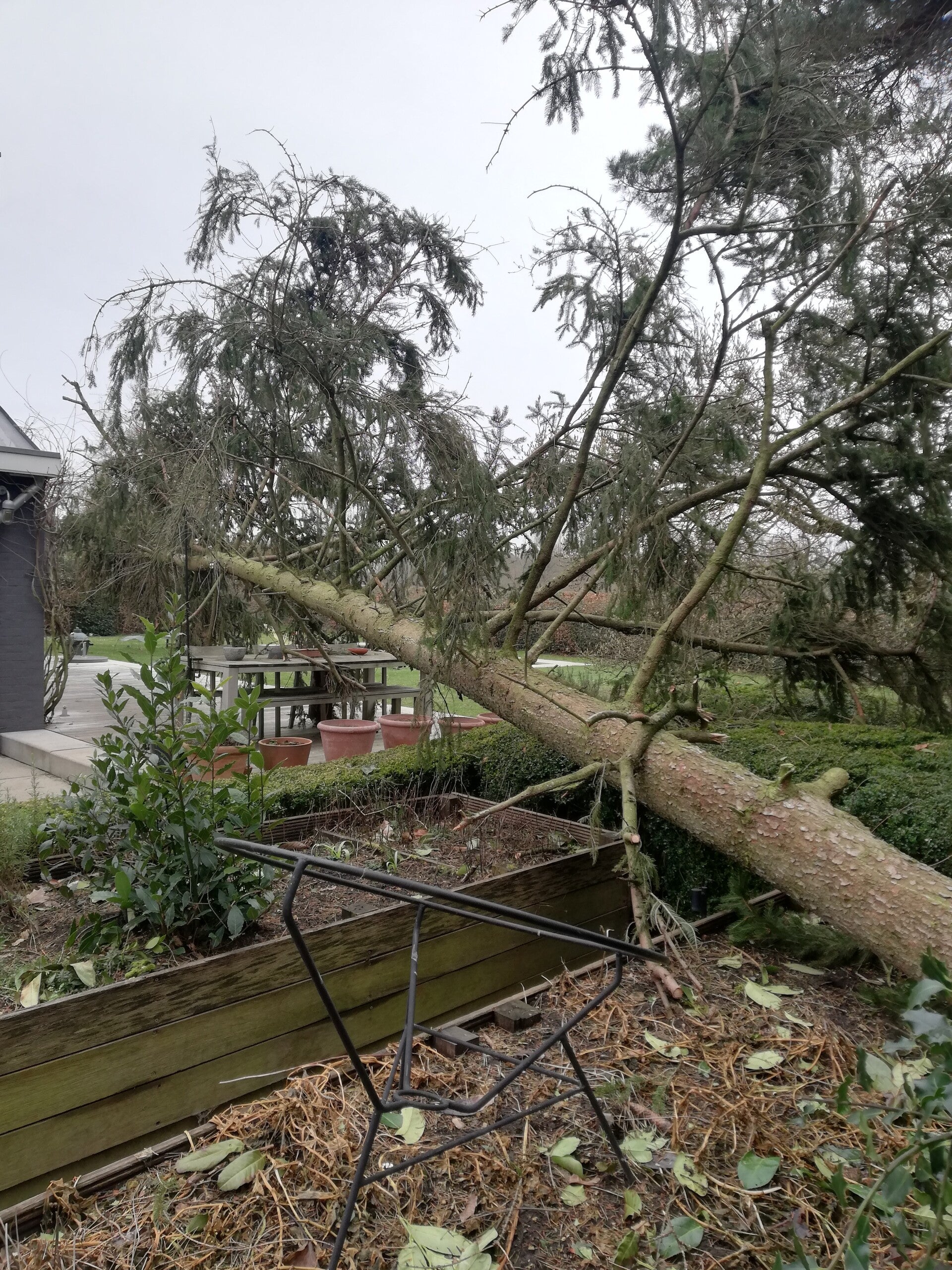 Coniferen vellen, serieus snoeien & serieus opruimen : voor & na.